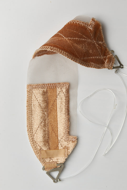 This wig grip is what I needed. No material running behind my ear. Just the a